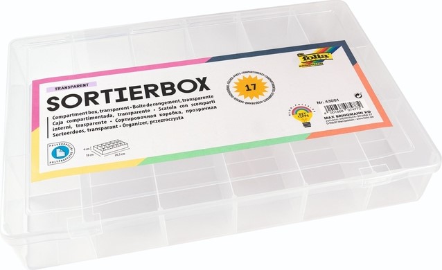 • Sorteerbox met 17 vakken, vlakke kunststof box voor het bewaren van kleine kantoorartikelen of knutselmateriaal.