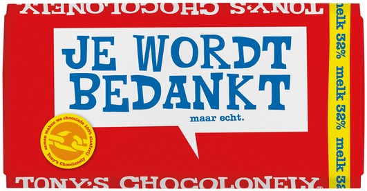 Chocolade Tony's Chocolonely melk bedankt reep 180gr