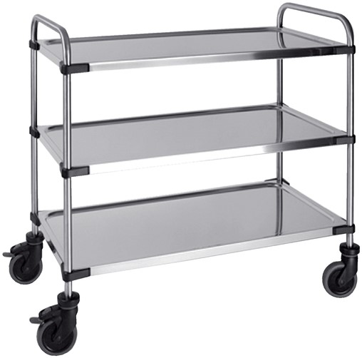 • Vier zwenkwielen Ø125mm, voorzien van stootringen.