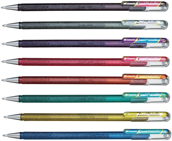 Gelschrijver Pentel K110 Dual medium metallic assorti 8 kleuren