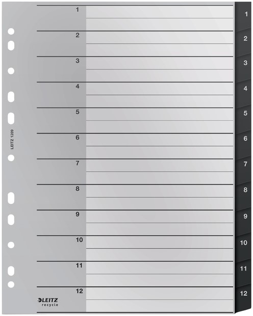 Tabblad Leitz Recycle A4 11-gaats 1-12 extra breed PP