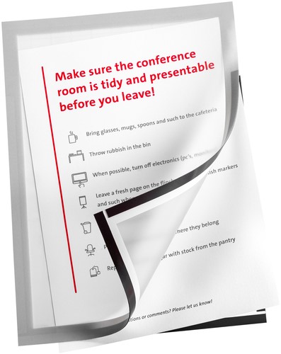 • Met het Infokader zelfklevend van Quantore A4 presenteer je documenten, posters of mededelingen altijd netjes en professioneel. De zilveren rand geeft je presentatie een strakke en moderne uitstraling, ideaal voor kantoren, winkels of openbare ruimtes. Het magnetische zichtframe is zowel staand als liggend te gebruiken en biedt flexibiliteit in je communicatie. Dankzij de zelfklevende achterzijde kleeft het stevig op alle vlakke oppervlakken en is het eenvoudig herpositioneerbaar zonder lijmresten. Verpakt per 2 stuks, zodat je direct meerdere plekken van duidelijke communicatie voorziet.kenmerken: