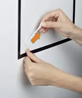 • Zelfklevend informatiekader voor gevoelige oppervlakken.