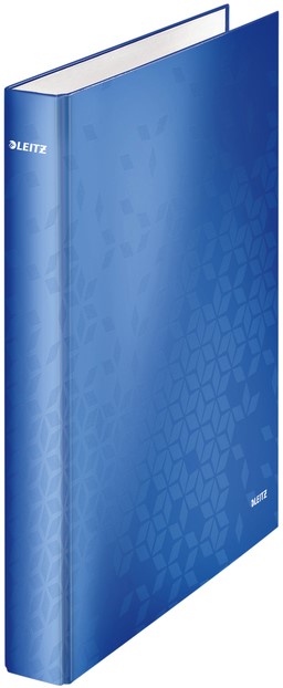 • Onze Leitz WOW ringband heeft een opvallend geometrisch patroon en is de perfecte keuze voor iedereen die op zoek is naar een stijlvolle en functionele oplossing voor het organiseren van documenten. Deze ringband is gemaakt van robuust en stevig grijs karton, overtrokken met bedrukt papier en afgewerkt met een transparante folie. Door de blauwe glanzende omslag is deze map een kleurrijke toevoeging.