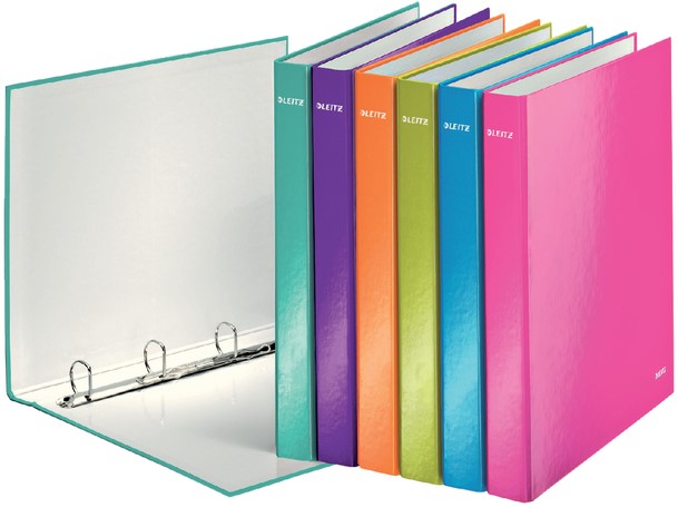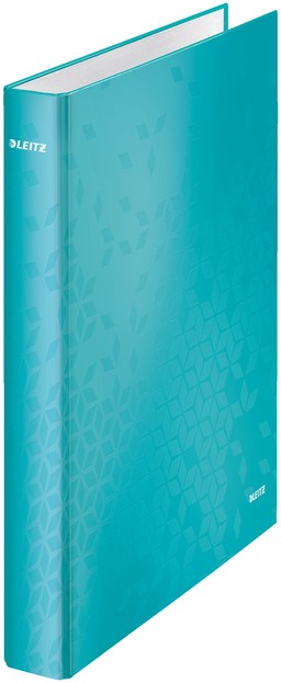 • Onze Leitz WOW ringband heeft een opvallend geometrisch patroon en is de perfecte keuze voor iedereen die op zoek is naar een stijlvolle en functionele oplossing voor het organiseren van documenten. Deze ringband is gemaakt van robuust en stevig grijs karton, overtrokken met bedrukt papier en afgewerkt met een transparante folie. Door de ijsblauwe glanzende omslag is deze map een kleurrijke toevoeging.