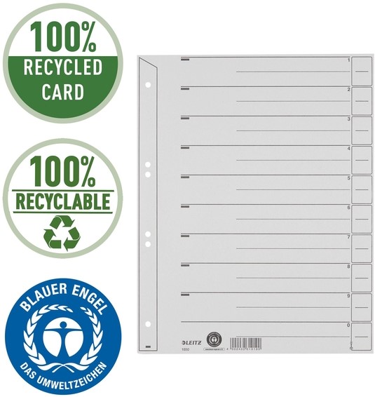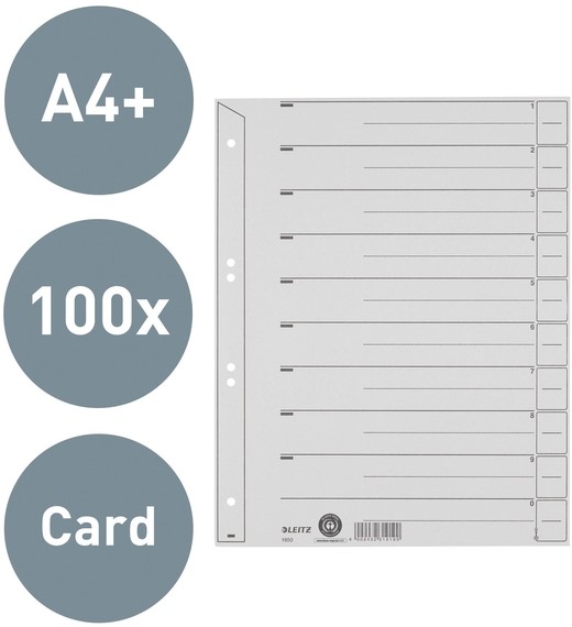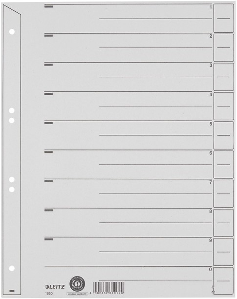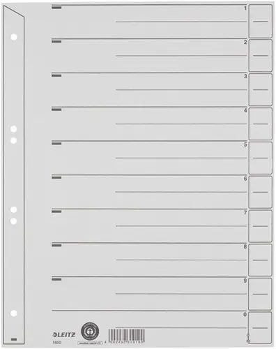 Scheidingsbladen Leitz A4 karton 200gr 6-gaats grijs 100 stuks