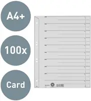 • A4 kartonnen tabbladen voor onderverdelingen in ordners of ringbanden.