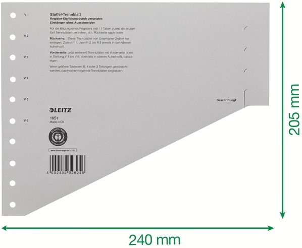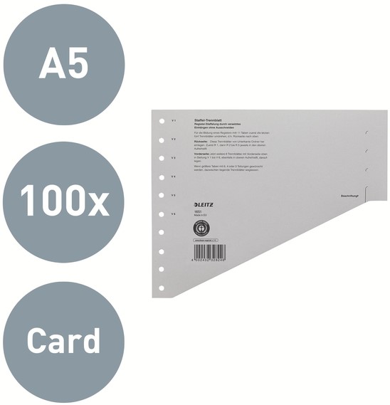 Scheidingsbladen Leitz A4 karton 200gr 11-gaats grijs 100 stuks