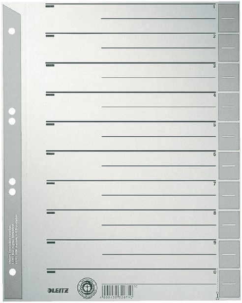 Scheidingsbladen Leitz A4 karton 230gr 6-gaats grijs 100 stuks
