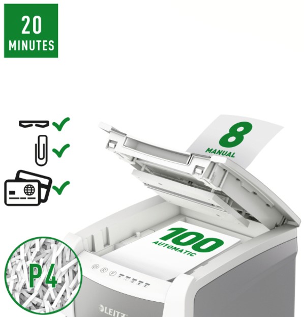 Papiervernietiger Leitz IQ Auto+ Small Office 100 P4 snippers 4x28mm