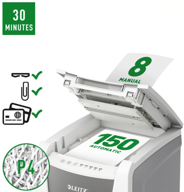 Papiervernietiger Leitz IQ Auto+ Office 150 P4 snippers 4x28mm