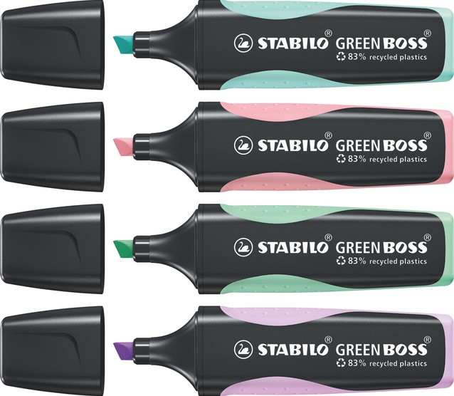 Markeerstift STABILO GREEN BOSS 6070/4 pastel assorti etui à 4 stuks