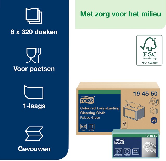 Reinigingsdoek Tork W8 Premium 1-laags 40 vel groen 194550