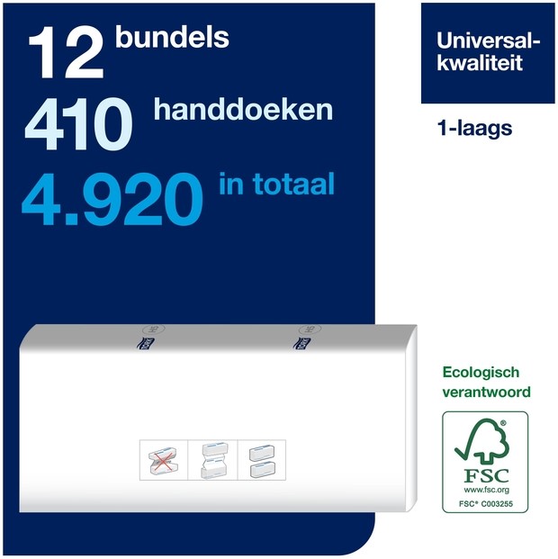 Handdoek Tork H5 PeakServe Universal 1-laags 201x225mm 12x410 vel wit 100585