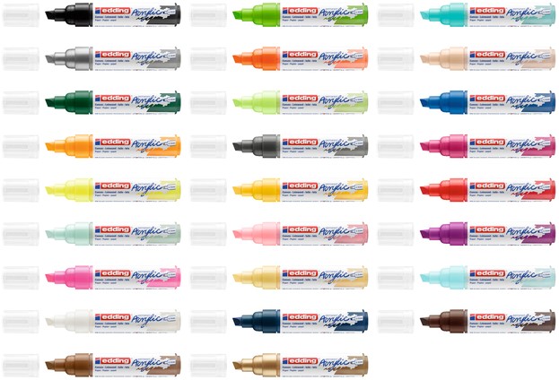 • Acrylmarker om te verven op lichte of donkere oppervlakken, ideaal voor materialen zoals linnen of verfpapier.