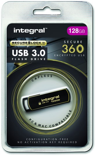 USB stick 3.0 Integral Secure 360 USB-A 128GB zwart