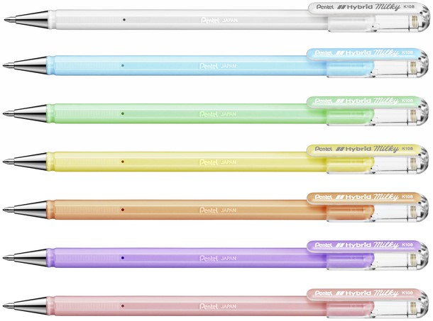 • De Pentel Milky is een pastelkleurige gel-inktroller. Geweldig om te gebruiken op zowel wit als zwart papier voor dagelijks gebruik of DIY projecten.De gel-inkt is goed dekkend en ideaal voor onder andere het verfraaien van wenskaarten.