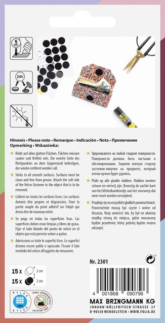 Klittenband Folia rond 2cm 15 stuks zwart 15 stuks wit