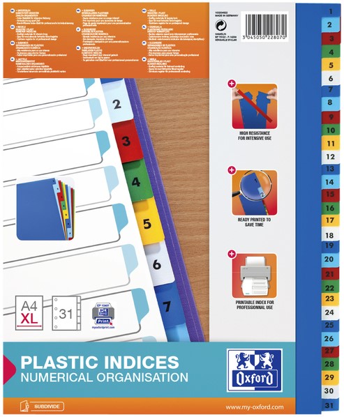 Tabbladen Oxford A4+ 11-gaats 1-31 PP kleur