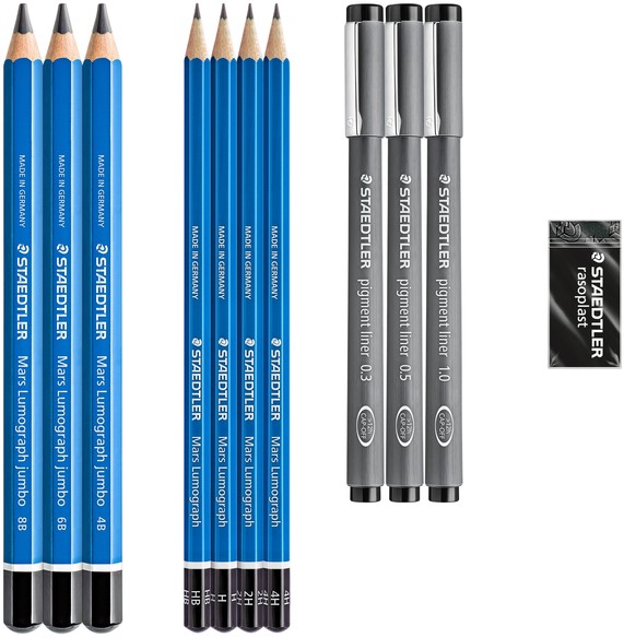 • Mars Lumograph 100 & Mars Lumograph jumbo 100J voor het schetsen van de basislijnen en lichte potloodlijnen.