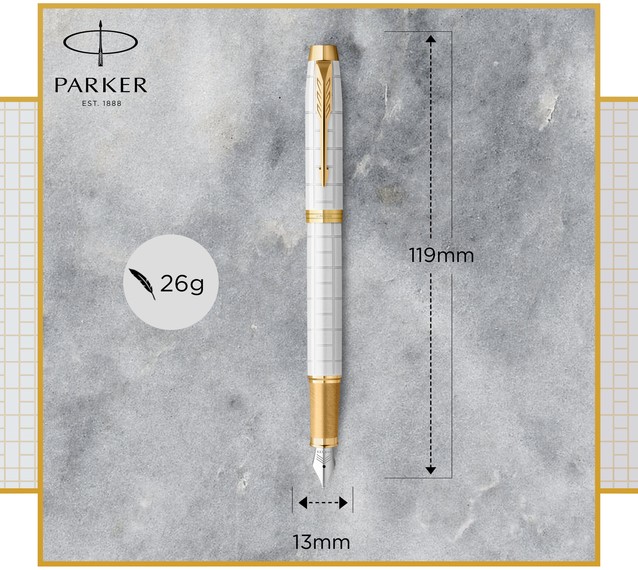 • De Parker IM Premium-vulpen is stijlvol, gepolijst en professioneel en een ideale partner met onbegrensde mogelijkheden. Het opvallende slanke model vult de iconische maar moderne ontwerpen naadloos aan.