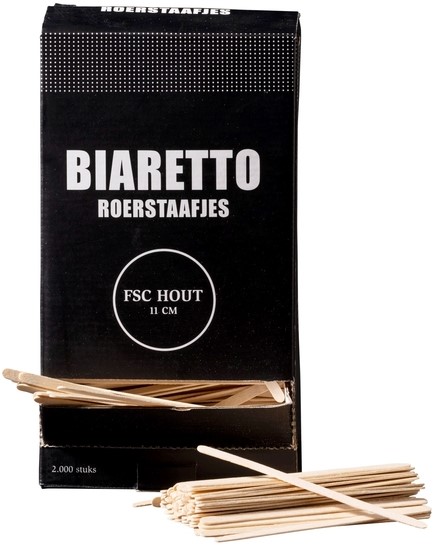 Roerstaafjes Biaretto hout 11cm 2000 stuks