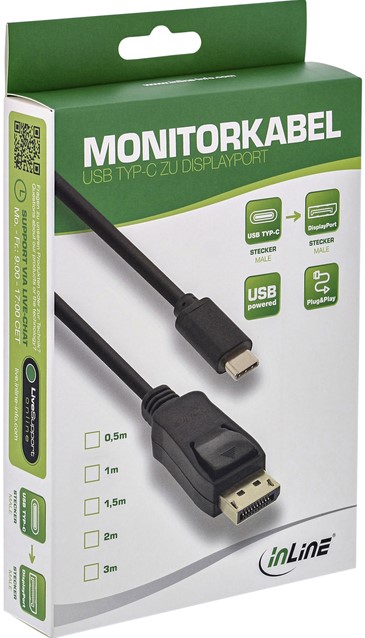 Kabel inLine USB-C Displayport 3.1 4K M/M 2 meter zwart