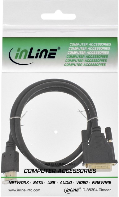Kabel inLine HDMI DVI 18+1 pin M/M 2 meter zwart