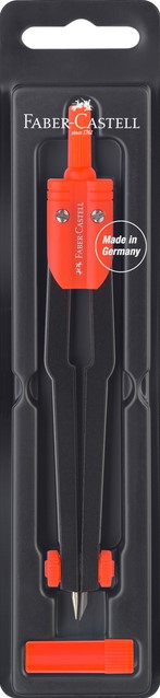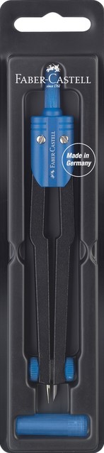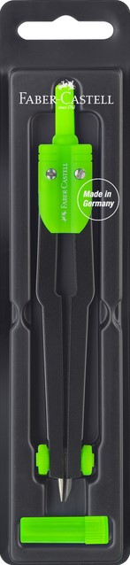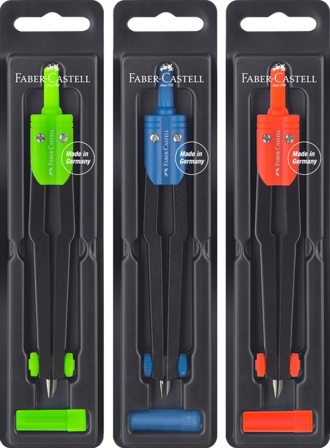 • Kwaliteit en functionaliteit gecombineerd met design - dat is het motto van Faber-Castell. Maar naast de trendy designs biedt Faber-Castell ook robuuste techniek. Deze passer uitermate geschikt voor school gebruik maakt cirkels met een diameter tot max. 360 mm. De set zit in stevige kunststof opberg box en wordt geleverd met reserve potloodstiften. Deze passers worden in assorti van kleuren geleverd: groen, rood en blauw.