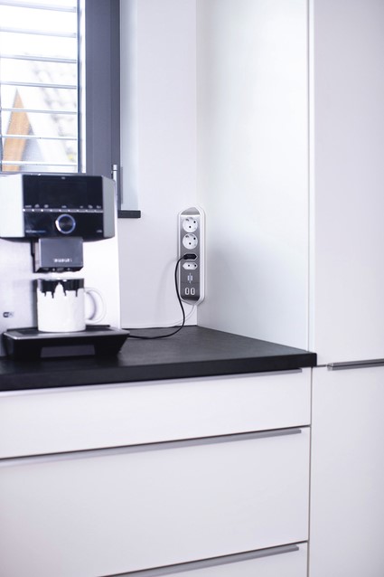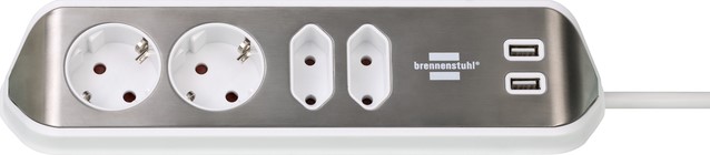 Stekkerdoos Brennenstuhl bureau Estilo 4 voudig inclusief 2 USB 2 meter wit/zilver