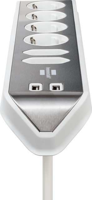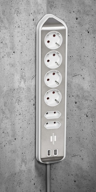 Stekkerdoos Brennenstuhl bureau Estilo 6 voudig inclusief 2 USB 2m meter wit/zilver