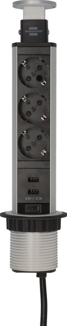 Stekkerdoos Brennenstuhl toren 3 voudig inclusief 2 USB 2 meter zwart/zilver