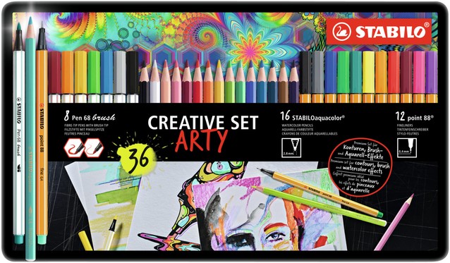 Creative set STABILO 87/3193 Arty assorti metalen etui à 36 stuks