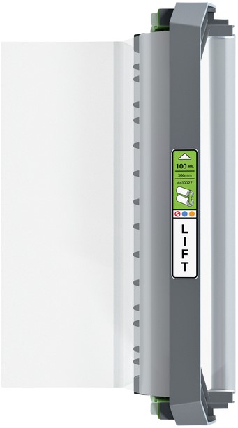 • Gemakkelijk te verwijderen 100 micron cartridge en opnieuw te laden in het Foton 30 toestel; voor een efficiënte en moeiteloze vervanging van lamineerrollen.