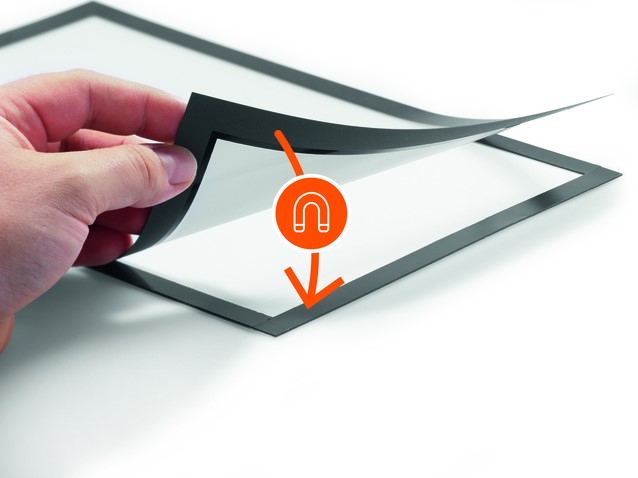 • Zelfklevend informatiekader met magnetische rand, voor A4 documenten.