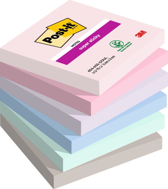 Memoblok Post-it 654 Super Sticky 76x76mm Soulful 6 stuks