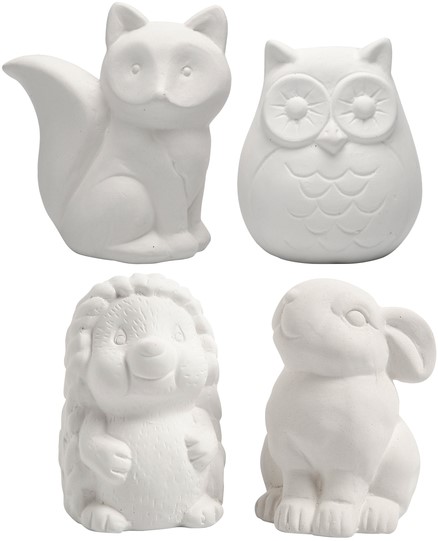 Dierenspaarpot Creativ Company terracotta 4 stuks uil, vos, haas en egel 9-10cm wit