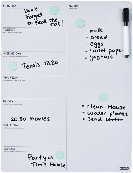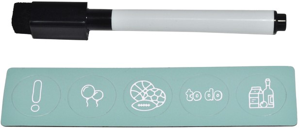 • Inclusief magnetische marker (+ wisserdop) en 5 magneetpicto's: 'Sport' - 'To Do' - 'Boodschappen' - 'Urgent' - 'Feest'.