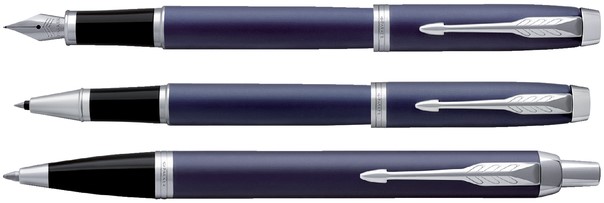 • Matte Blue CT, matblauwe lak agewerkt met chromen details en een edelstalen penpunt.
