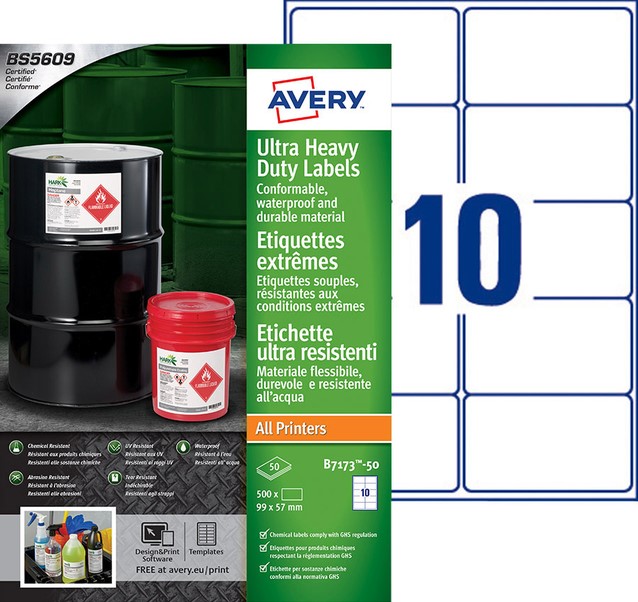 Etiket Avery B7173-50 99x57mm polyethyleen wit 500 etiketten