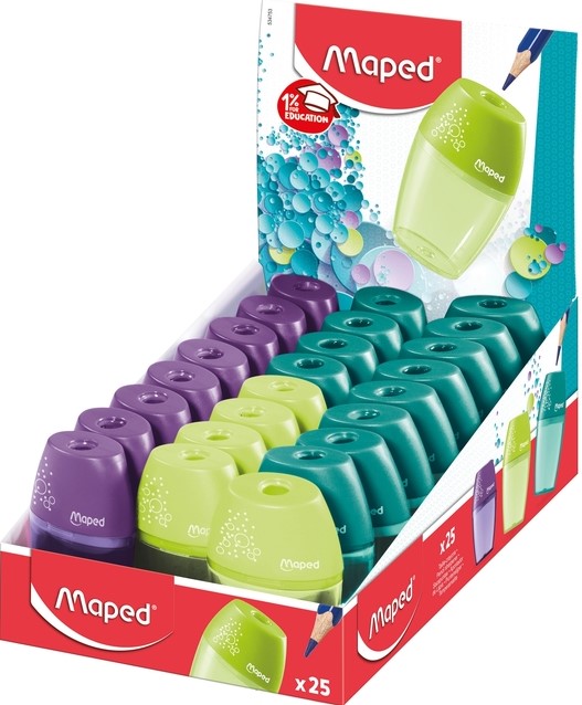 Puntenslijper Maped Shaker 1-gaats display à 25 stuks assorti