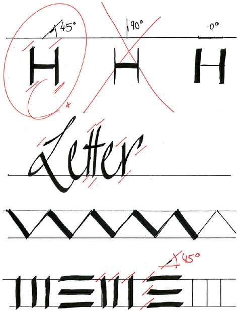 • Viltstiften met kalligrafie-punt.