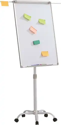 Dit verrijdbare flipoverbord is de perfecte oplossing voor vergaderingen, presentaties of trainingen in verschillende ruimtes. Dankzij het wieltjes is het makkelijk te verplaatsen, zodat je als spreker altijd de juiste positie kunt innemen. Het bord is in hoogte verstelbaar, wat het mogelijk maakt om op de ideale hoogte te schrijven of tekenen. Het gelakte stalen whiteboardoppervlak is beschrijfbaar en kan eenvoudig gewist worden met de bijgeleverde wisser. Bovendien kun je dankzij de magnetische functie eenvoudig losse vellen papier of foto's ophangen met de meegeleverde magneten.