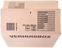 • De verhuisdoos IEZZY 480x320x360mm is een stevige en duurzame oplossing voor het efficiënt verpakken, verhuizen of opslaan van goederen. Gemaakt van 3 mm dik B-golf karton, biedt deze dubbelgolf doos een betrouwbare draagkracht tot 20 kg. De inhoud van 55 liter maakt de doos ruim en veelzijdig inzetbaar. Dankzij de insteeksluiting en duidelijke bedrukking – waaronder ruimte-indeling – is de doos praktisch in gebruik en geschikt voor herhaaldelijk gebruik. FSC-gecertificeerd en geleverd per 25 stuks voor professioneel of grootschalig verhuizen.Kenmerken: