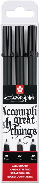 Kalligrafiepen Sakura Calligrapher set à 3 breedtes zwart