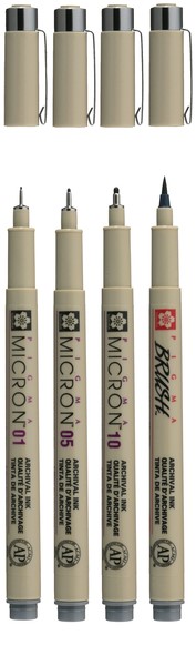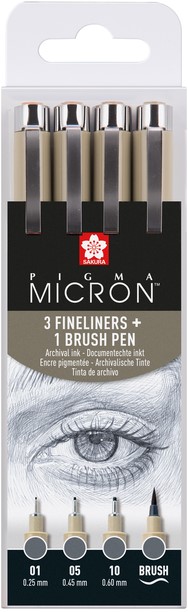 Fineliner Sakura Pigma Micron koelgrijs set 4 maten
