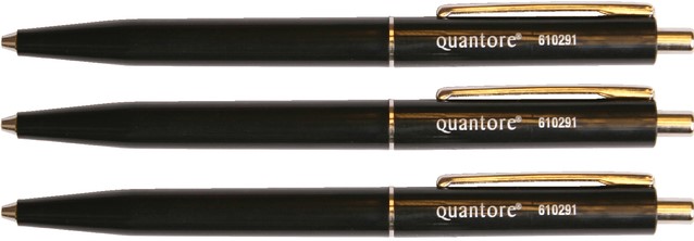 Balpen Quantore drukknop met metalen clip zwart medium