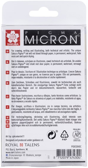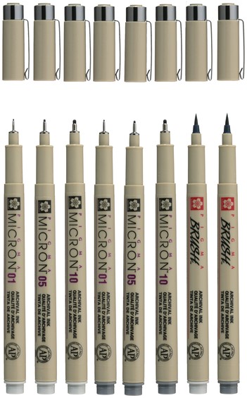Fineliner en brushpen Sakura Pigma Micron koudgrijs set à 8 stuks assorti