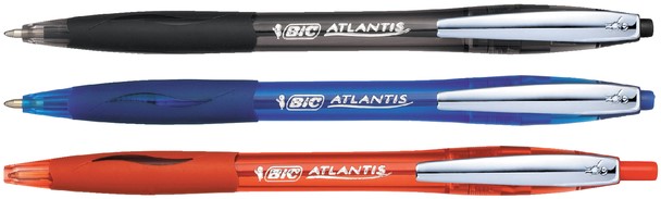 Balpen Bic Atlantis soft metalen clip clic medium blauw