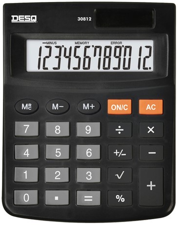• Standaard bureaurekenmachine uitgerust met alle basisfuncties en 12-cijferig display.